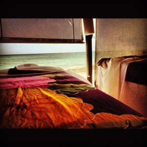 We took this photo before a very relaxing couple’s massage on the beach in Sandals Cay, a private island.