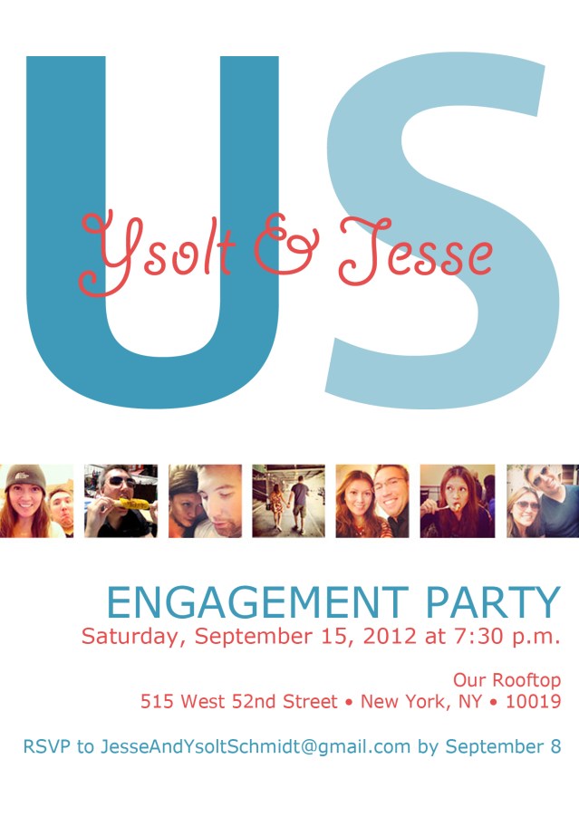 Let the wedding festivities begin! We’ve decided to celebrate our engagement by getting together with our closest friends (sorry parents, grandparents, aunts and uncles!).